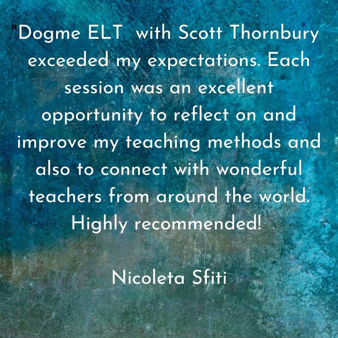 This course is now sold out. You can add yourself to a waiting list to be notified if Scott Thornbury decides to offer this course again in the future: